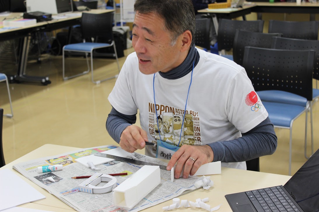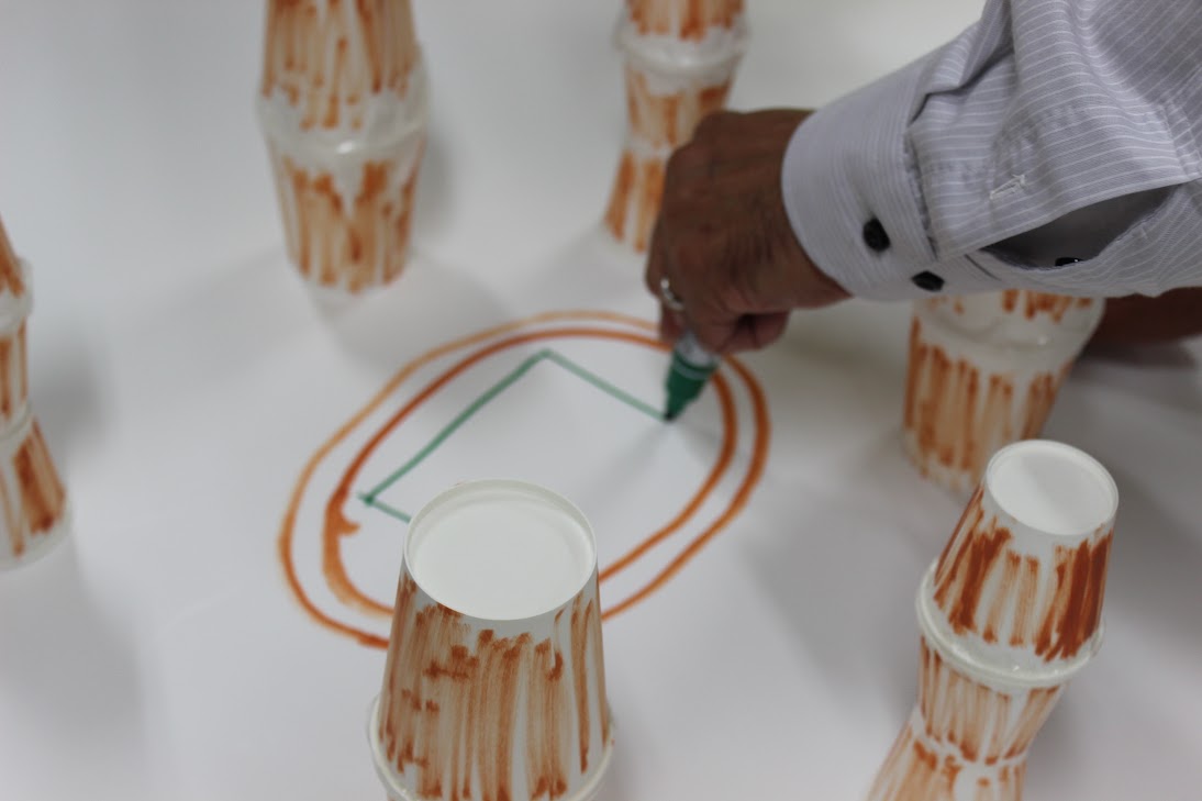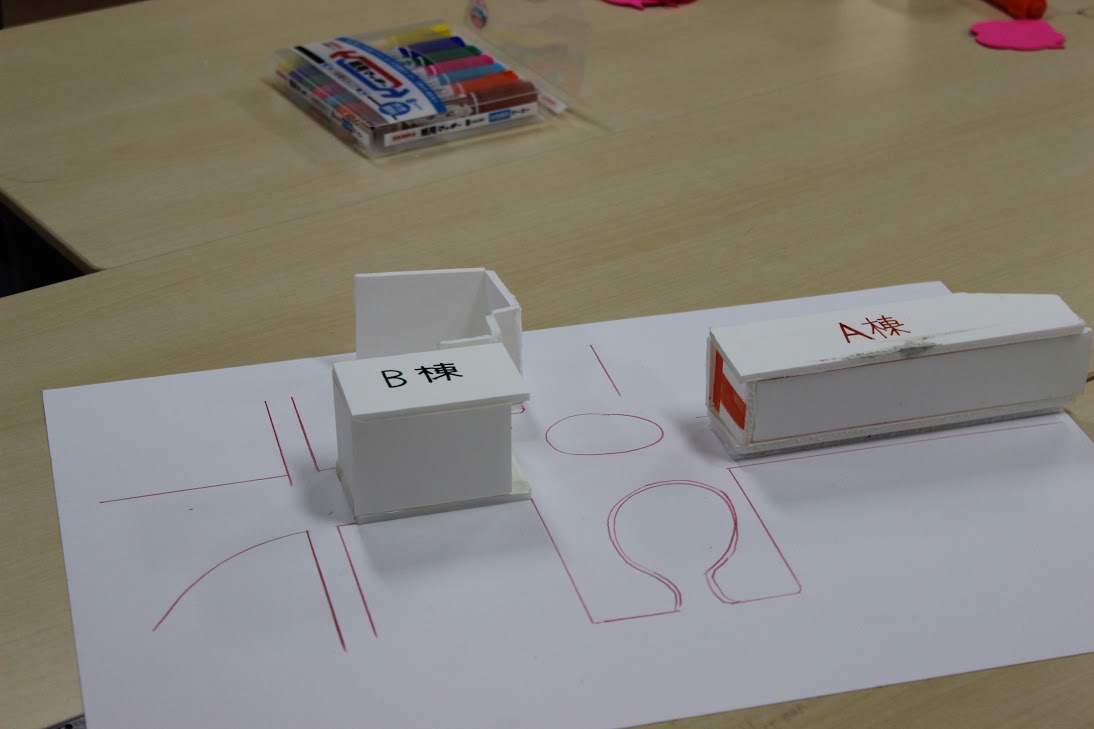 プレゼン会場には、紙コップ、割りばし、付箋などを駆使した、新国立競技場の姿もありました。